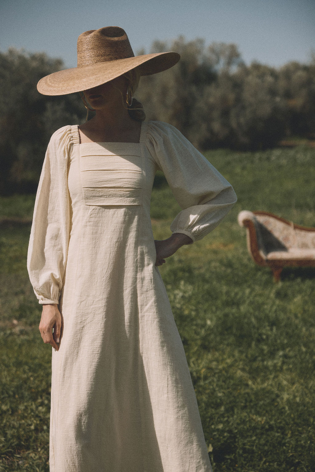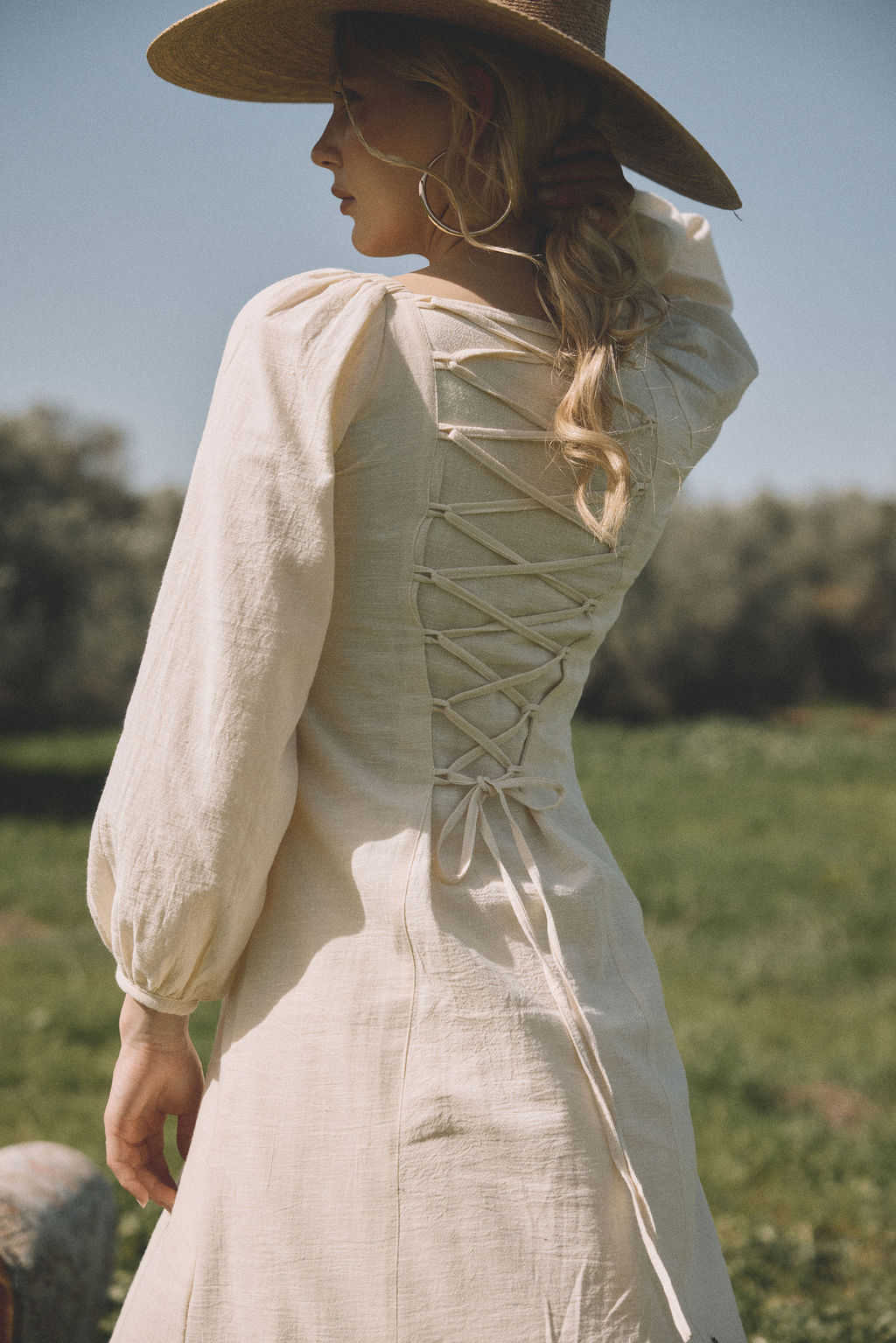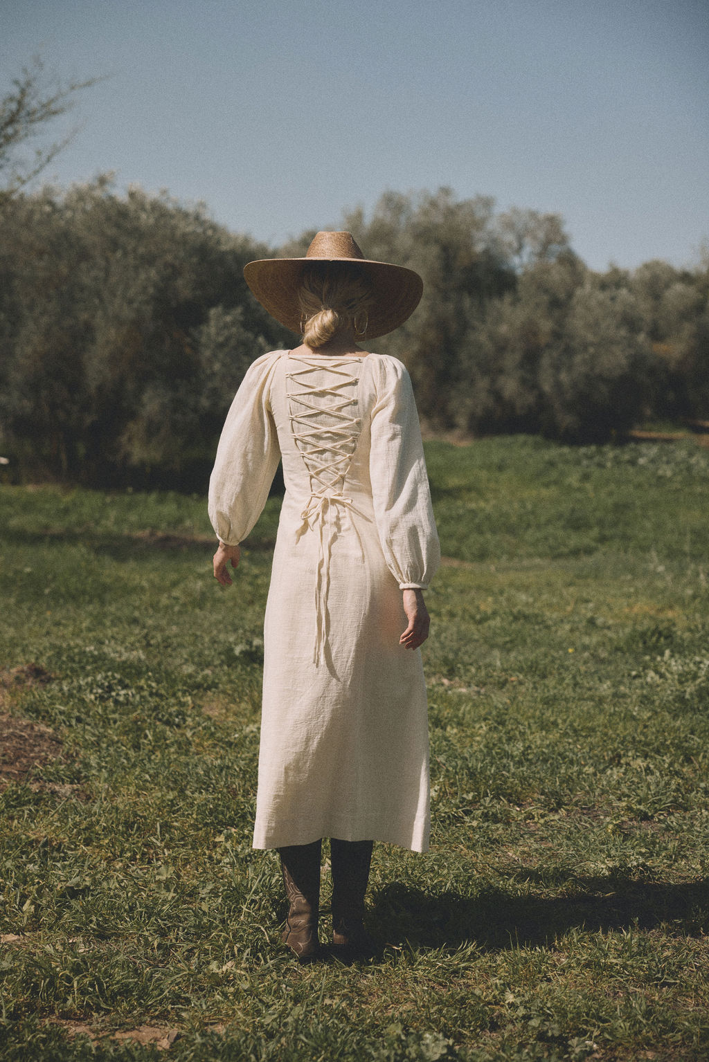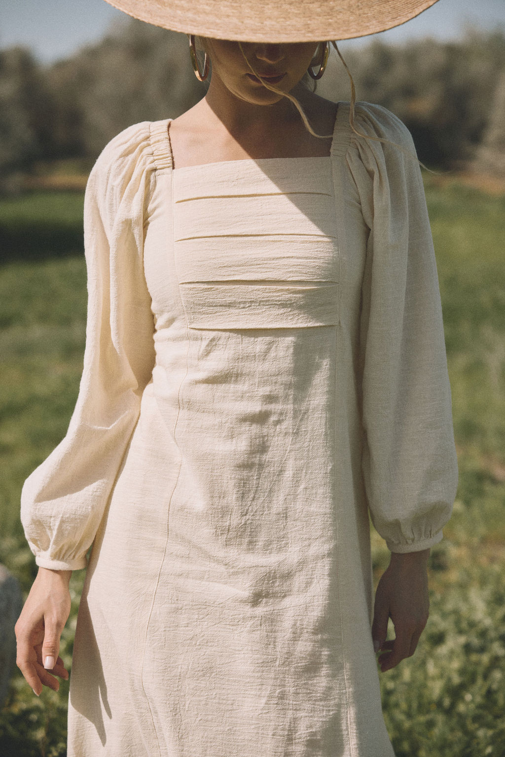 שמלה כפרית ואצילית מבד כותנה טבעי, רך ונושם בגוון שמנת נקי.